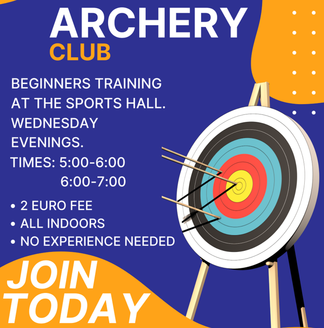 ATU Archery Club is back for indoor training. Beginner training is on every Wednesday from 5-6 and 6-7 at the ATU sports hall.